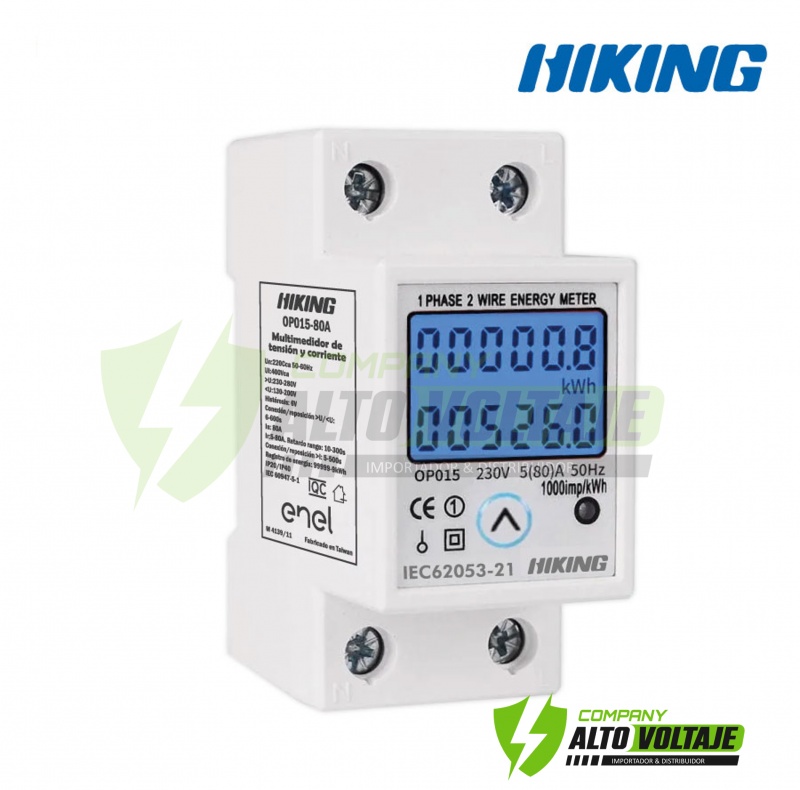 Instalación en carril Din de 35 mm. El medidor es multifuncional y muestra energía total en kWh, energía temporal en kWh, voltaje real, corriente real y potencia real mediante pulsación manual. Mantenga presionado el botón durante 6 segundos for restablecer el kWh temporal